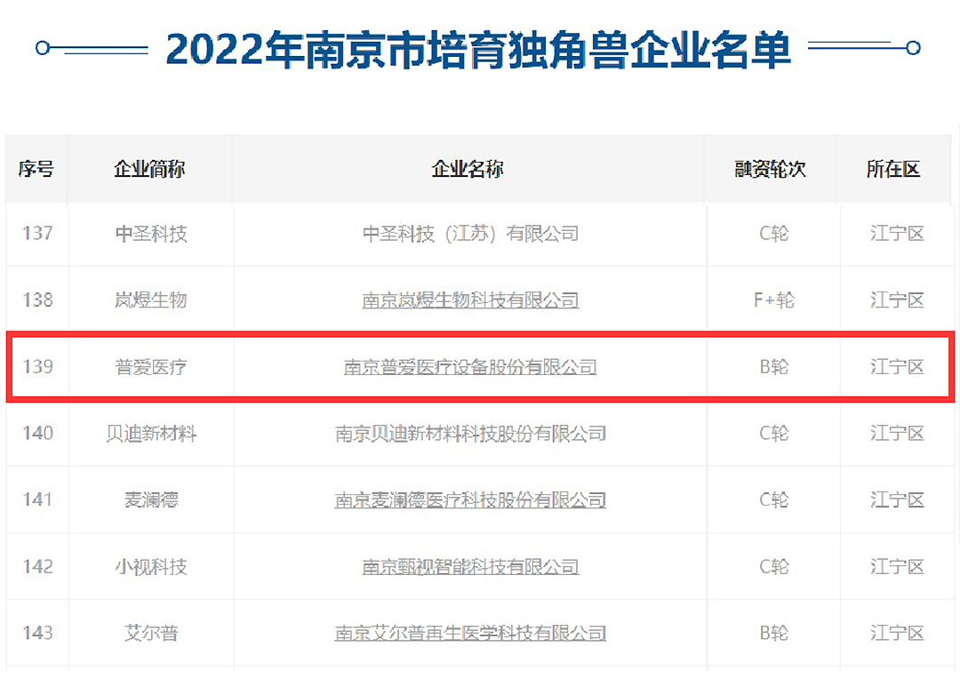 繼2021年獲此殊榮,普愛醫(yī)療再次被評為“南京市培育獨角獸企業(yè)”,彰顯了普愛醫(yī)療日益壯大的企業(yè)實力和業(yè)界對公司科研及發(fā)展成果的充分肯定。